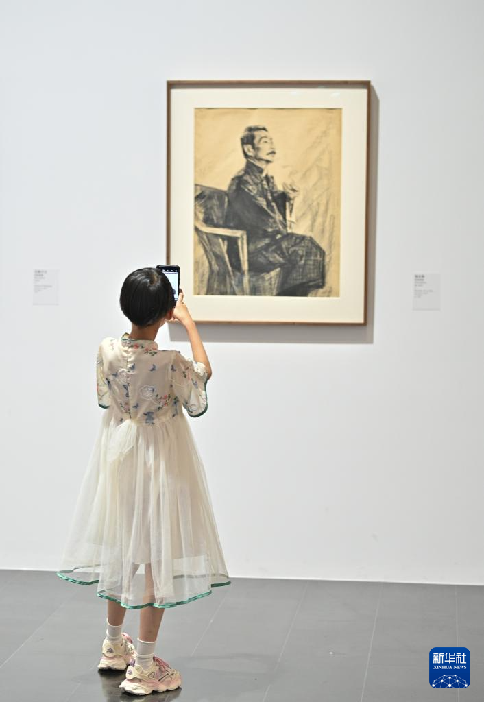 7月24日,观众在清华大学艺术博物馆欣赏画作。