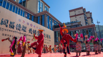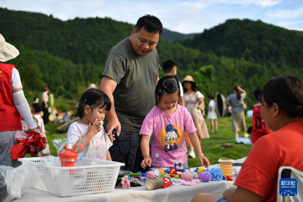 8月25日,孩子们在大元社乡村青少年艺术节上表演(无人机照片)。