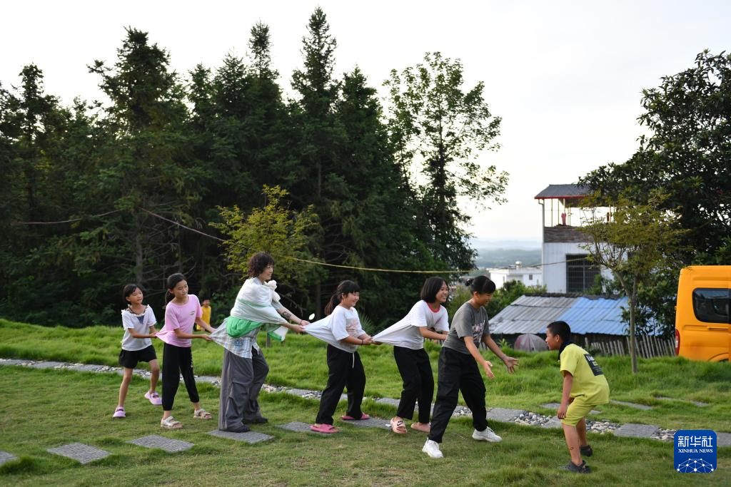 8月24日,大元社的孩子们和老师在晚饭后玩耍。