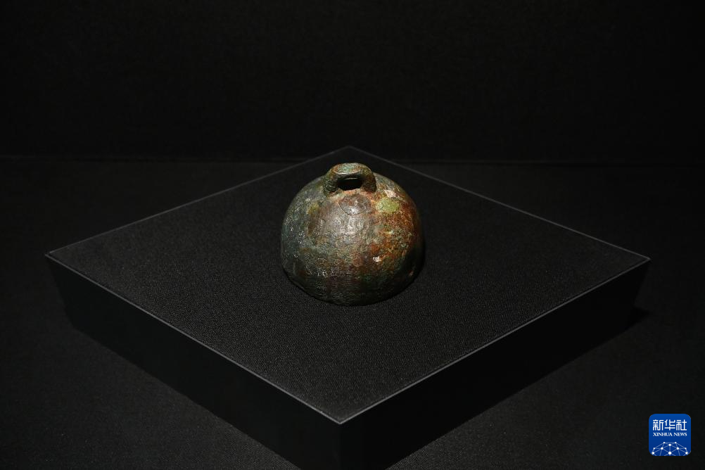 这是在秦始皇帝陵博物院展出的秦两诏文空心铜权(9月8日摄)。