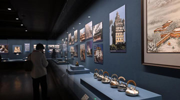 这是1月21日在上海博物馆东馆拍摄的“印象·派对”艺术大展现场。