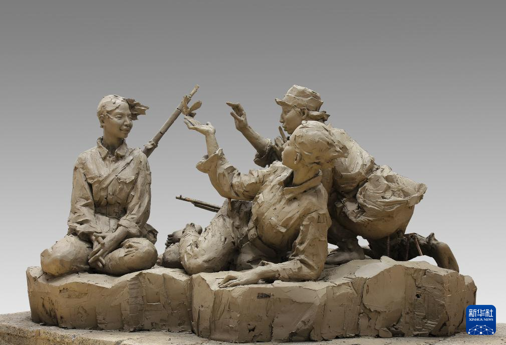这是国防大学军事文化学院副教授王树山的雕塑作品《红色记忆》。