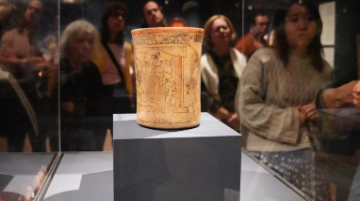 11月4日,在埃及吉萨的大埃及博物馆,游客在法老图坦卡蒙展馆参观神龛。