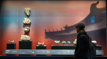 这是11月4日在埃及吉萨的大埃及博物馆拍摄的胡夫太阳船。