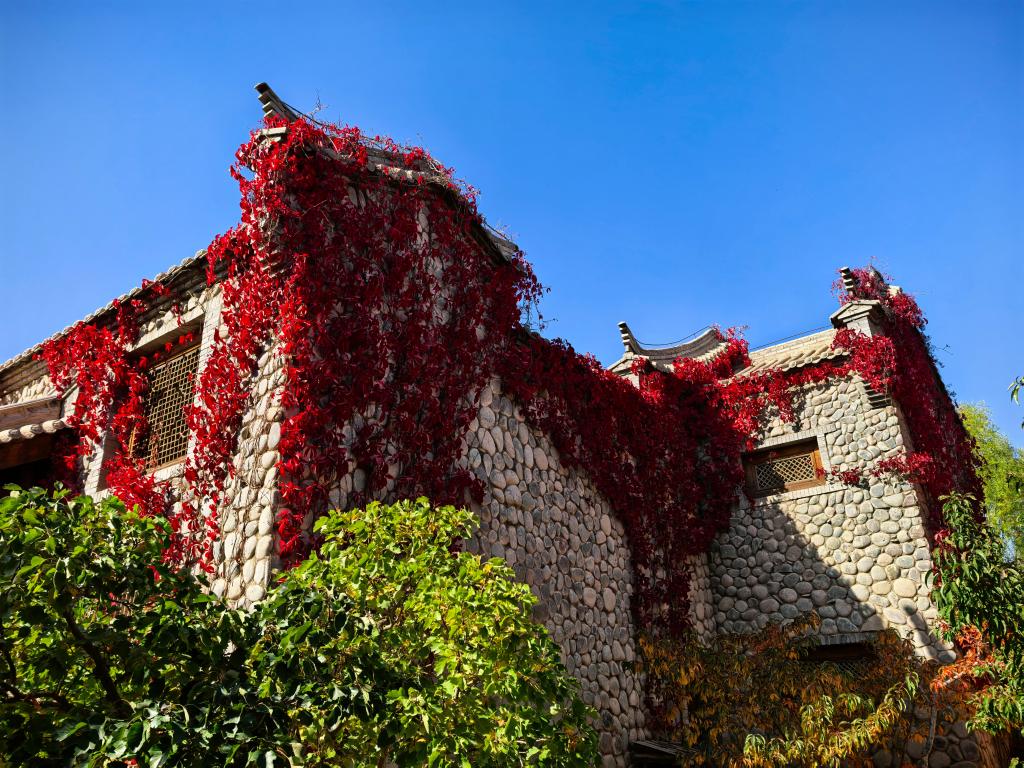以上图片:2025年10月17日在甘肃省张掖市临泽县丹霞口文旅小镇拍摄的秋景。CICPHOTO/吴学珍摄