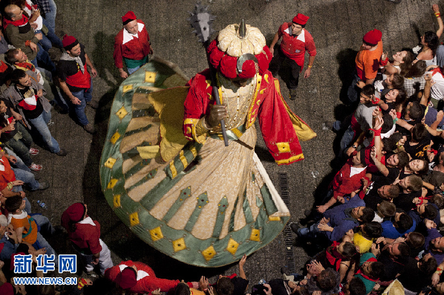 西班牙貝爾加(Berga)市的La Patum節上,巨大的人偶穿過狂歡的人群。