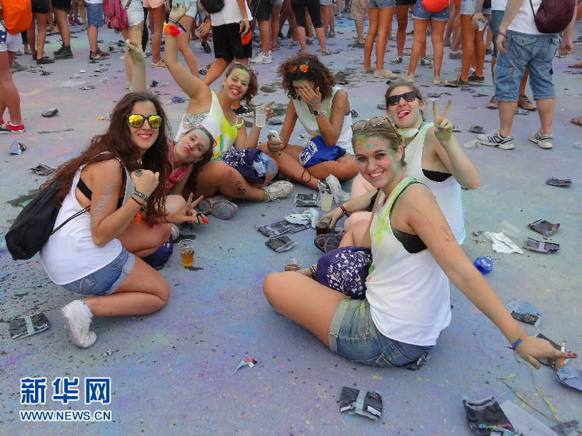 “2014巴塞羅那霍利節”現場的年輕人 (新華社記者周喆拍攝)?