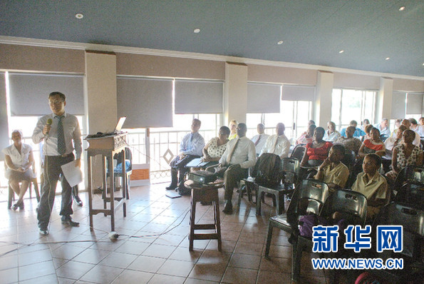 ????中國文化和國際教育交流中心負責人、南非漢語推廣委員會委員陸志雷博士介紹漢語教學情況。新華社記者郭興華 攝