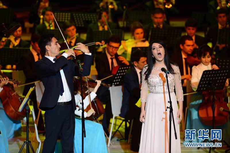 ????3月25日晚,烏茲別克斯坦首都塔什干“烏茲別克斯坦國際論壇宮”,由烏茲別克斯坦文化體育部等多個部門聯合組織舉辦的“春天交響曲”音樂晚會在首都塔什干“烏茲別克斯坦國際論壇宮”精彩上演,烏茲別克斯坦青年藝術家們向來自烏科學、文化、藝術和體育等各界人士代表、駐烏外國使節和國際組織代表以及前來參加烏總統選舉的國際和國內觀察員近2500余名觀眾獻上一場世界著名交響曲和烏茲別克斯坦傳統民族音樂融為一體的精彩音樂盛宴。新華網記者沙達提 攝
