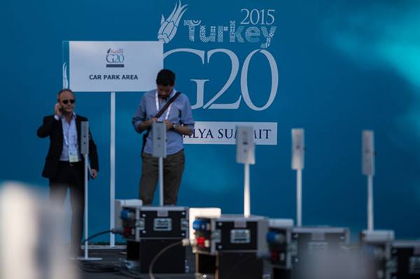 2015年11月14日 11月13日,在土耳其安塔利亞,記者在G20峰會媒體區工作。 新華社記者潘超越攝