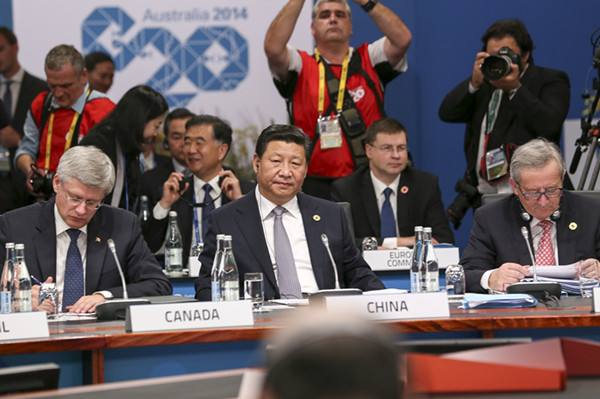 2014年11月15日,G20第九次峰會在澳大利亞布里斯班舉行。國家主席習近平出席會議并發表題為《推動創新發展 實現聯動增長》的重要講話。 新華社發
