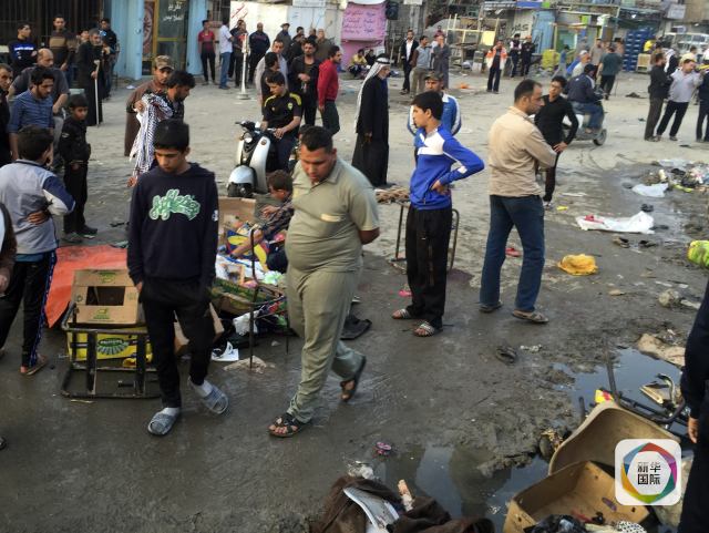 2月28日,在巴格達,人們聚集在發生爆炸的市場附近。 新華社發(哈利勒·達烏德攝)