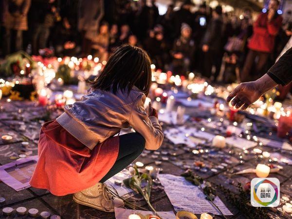 布魯塞爾市中心廣場,女孩點燃悼念蠟燭。(圖片來源:新華/美聯)