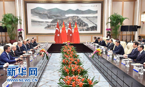 9月3日,國家主席習近平在杭州會見來華出席二十國集團領導人杭州峰會的土耳其總統埃爾多安。新華社記者 李濤 攝