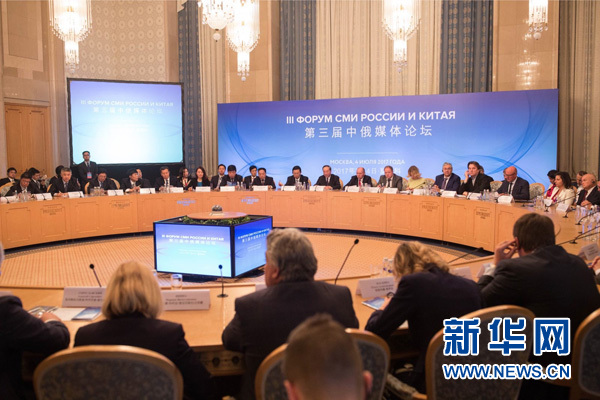 7月4日,第三屆中俄媒體論壇在莫斯科總統(tǒng)飯店隆重舉行。新華社記者 吳壯 攝