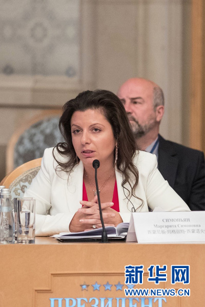 7月4日,“今日俄羅斯”電視臺(tái)總編輯西蒙尼揚(yáng)在第三屆中俄媒體論壇上發(fā)言。新華社記者 吳壯 攝