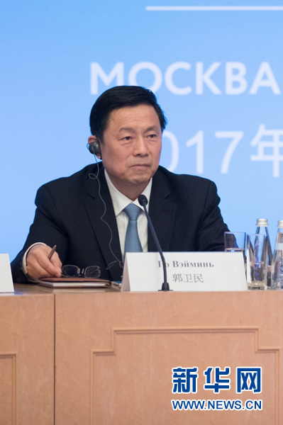 7月4日,國(guó)務(wù)院新聞辦副主任郭衛(wèi)民在第三屆中俄媒體論壇上聆聽(tīng)報(bào)告。新華社記者 吳壯 攝