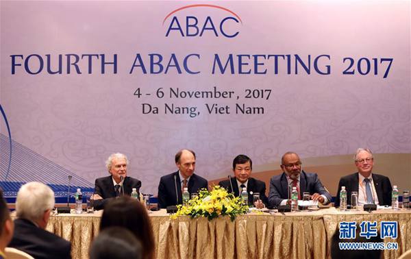 11月6日,在越南峴港,APEC工商咨詢理事會成員代表出席記者會。2017亞太經(jīng)合組織(APEC)工商咨詢理事會成員6日表示,中國經(jīng)濟(jì)發(fā)展對APEC區(qū)域經(jīng)濟(jì)發(fā)展至關(guān)重要,期待中國智慧在推動區(qū)域經(jīng)濟(jì)一體化方面發(fā)揮更大作用。新華社記者李鵬攝