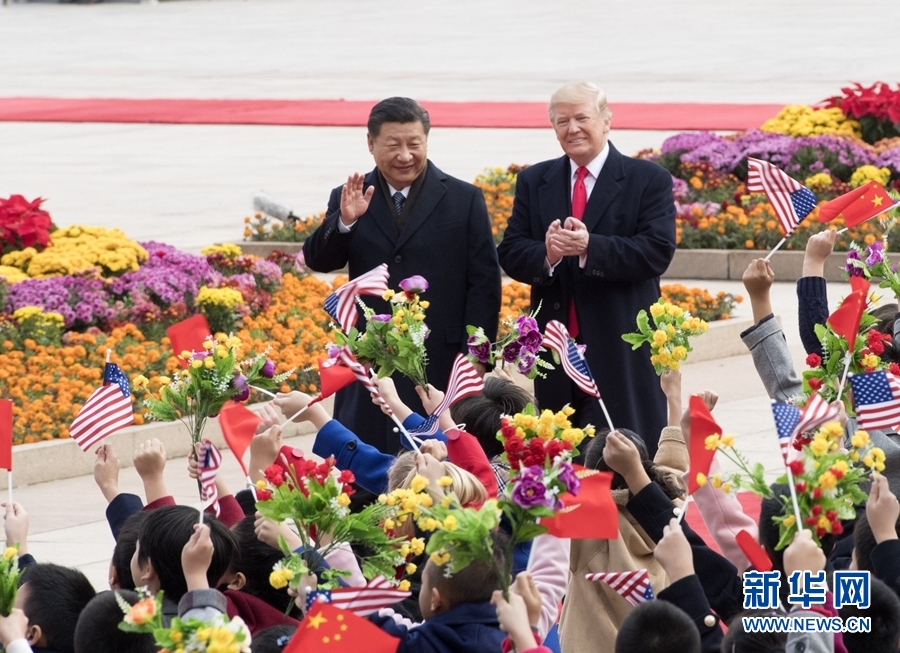 11月9日,國(guó)家主席習(xí)近平在北京人民大會(huì)堂東門(mén)外廣場(chǎng)舉行歡迎儀式,歡迎美利堅(jiān)合眾國(guó)總統(tǒng)唐納德·特朗普對(duì)中國(guó)進(jìn)行國(guó)事訪問(wèn)。 新華社記者李學(xué)仁攝