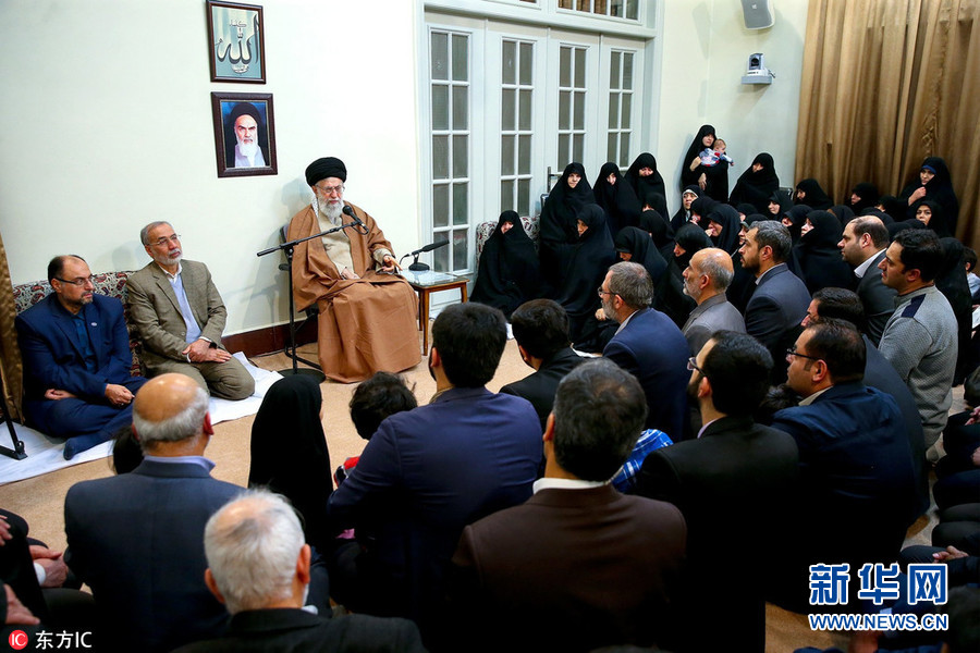 1月2日,伊朗德黑蘭,伊朗最高領(lǐng)袖哈梅內(nèi)伊?xí)娨晾恃车勒呒胰耍⒃跁?huì)面上發(fā)表講話。據(jù)媒體報(bào)道,哈梅內(nèi)伊稱國內(nèi)爆發(fā)的抗議活動(dòng)是由外國勢(shì)力操控。他表示:“近日,伊朗的敵人向這些鬧事者們提供著金錢、武器和政治的支持,以讓他們來傷害伊朗”。(圖片來源:東方IC)