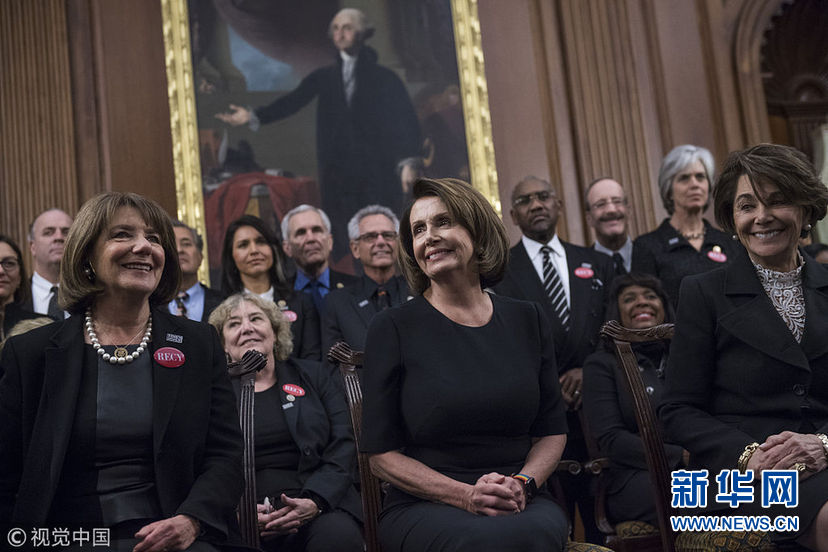 當地時間1月30日,美國華盛頓,民主黨國會議員和性侵幸存者一同穿黑衣現身國會大廈,聲援勇敢反對性騷擾和歧視的人們。眾議院民主黨人計劃穿黑衣出席特朗普的國情咨文演講,支持MeToo和TimesUp組織。 (圖片來源:視覺中國)