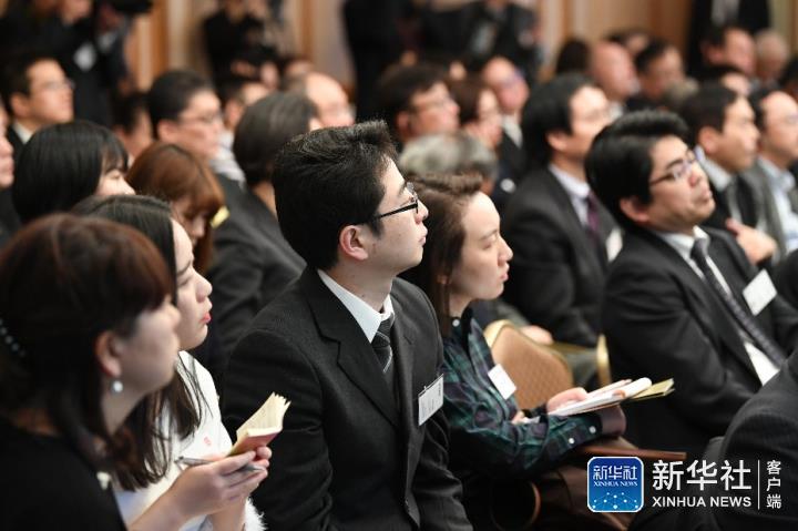 1月31日,新華社在東京舉行日本專線說明會。日本專線將于2月1日正式上線,為日本用戶提供文字、圖片、音視頻等多種形態(tài)的日文新聞產(chǎn)品。日本專線說明會會場內(nèi)觀眾在認真聆聽。