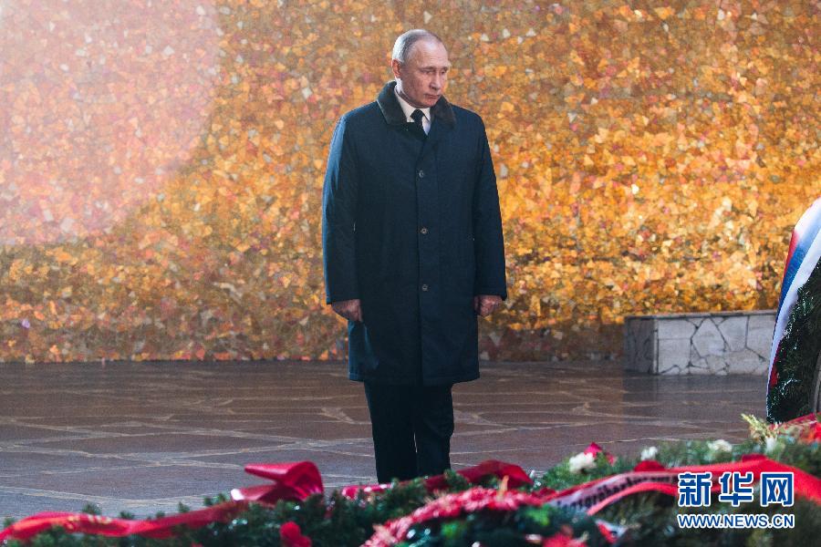 俄羅斯總統普京當天來到位于伏爾加格勒的斯大林格勒保衛戰國家歷史紀念博物館,走在被白雪覆蓋的馬馬耶夫崗“祖國母親在召喚”的巨型雕像前,向崔可夫元帥墓獻上鮮花。