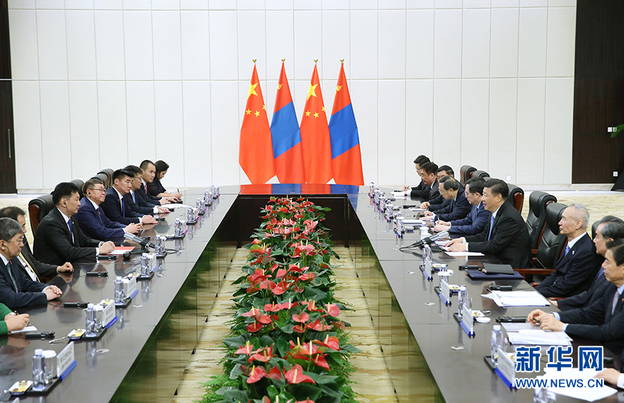 習(xí)近平指出,中方始終將中蒙關(guān)系放在周邊外交重要位置。我們將推動(dòng)建設(shè)人類(lèi)命運(yùn)共同體,繼續(xù)按照親誠(chéng)惠容理念和與鄰為善、以鄰為伴的周邊外交方針,深化同蒙古國(guó)的關(guān)系。當(dāng)前,中蒙關(guān)系處在新的歷史階段。雙方要本著互信、合作、共贏原則,抓住機(jī)遇,推動(dòng)中蒙全面戰(zhàn)略伙伴關(guān)系向前發(fā)展。