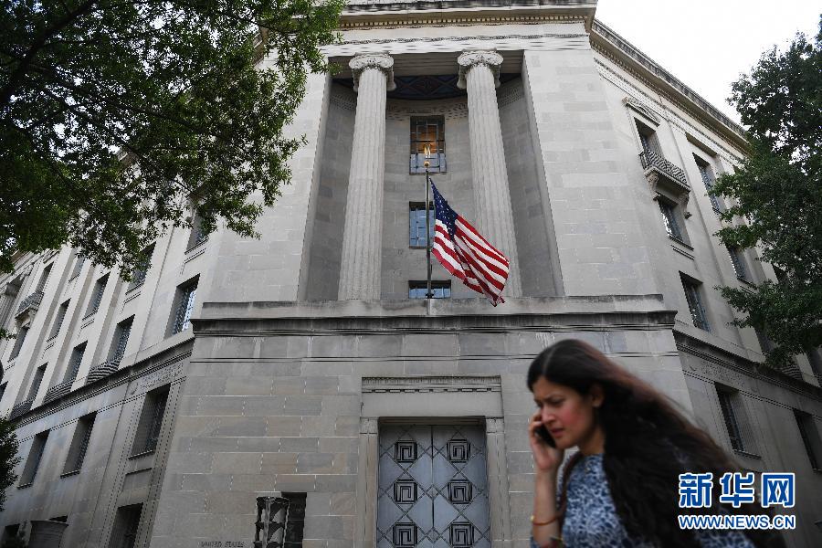 這是7月13日在美國華盛頓拍攝的司法部大樓。美國特別檢察官辦公室13日向12名俄羅斯人提起訴訟,稱其涉嫌在2016年干預(yù)美國總統(tǒng)選舉。負(fù)責(zé)“通俄門”調(diào)查的司法部副部長羅德·羅森斯坦當(dāng)天在發(fā)布會上說:“本次控訴具名指控12名俄軍方人士合謀干預(yù)美國2016年總統(tǒng)選舉。” 新華社記者 劉杰 攝
