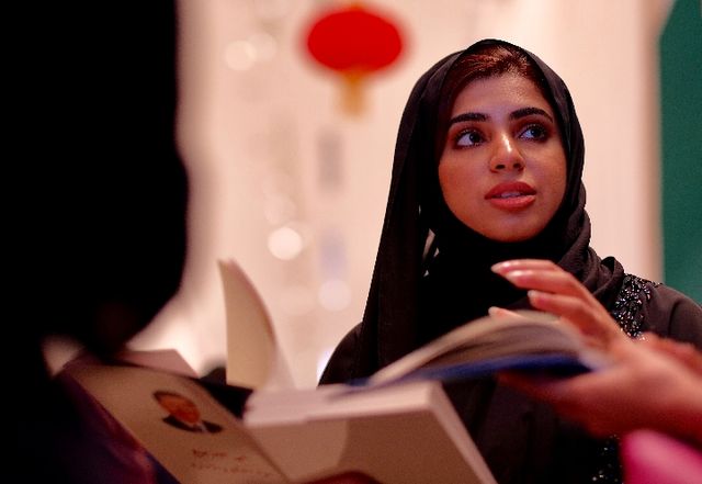 15日在阿布扎比舉行的中國圖書展銷周活動(dòng)啟動(dòng)儀式上,記者見到了正在全神貫注看書的阿聯(lián)酋姑娘阿姆娜。她手里拿的是阿文版《習(xí)近平談治國理政》。