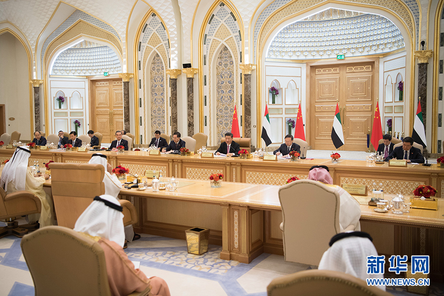 阿布扎比王儲穆罕默德表示,我對2015年對中國的訪問記憶猶新。阿方很高興能接待習主席這次對阿聯酋的歷史性訪問。我們十分欽佩中國取得的發展成就,高度認同習近平主席的遠見卓識和治國理政理念,相信中國有著光明的未來,必將為世界和平和人類進步作出更大貢獻。阿中在政治、經濟、金融、科技、能源、人文等廣泛領域擁有巨大合作潛力,深化同兄弟般中國的傳統、戰略、友好關系始終是阿聯酋對外關系的重中之重。阿中關系提升至全面戰略伙伴關系符合雙方共同心愿,將更好造福兩國人民。阿聯酋堅定支持一個中國原則,贊賞中國在國際事務中的重要作用,愿密切同中國在發展、反恐等重大問題上的溝通和協調。