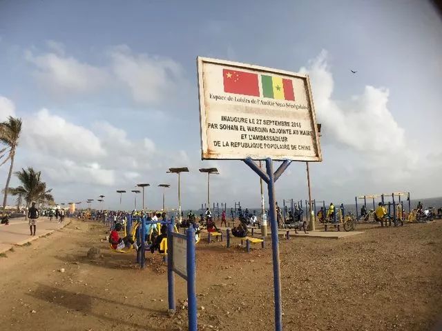 駐塞中資公司回饋當?shù)厣鐣谶_喀爾海濱大道旁修建了綿延兩公里長的體育健身公園。(新華社記者駱珺攝)