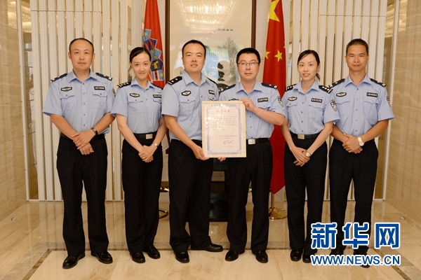 8月14日,中國駐克羅地亞大使胡兆明(左四)在薩格勒布為圓滿完成首次中克警務聯巡的中國警察頒發表彰證書。6名中國警察15日從克羅地亞首都薩格勒布啟程回國,為期一個月的中國與克羅地亞首次旅游季警務聯合巡邏圓滿結束。新華網發 高磊攝