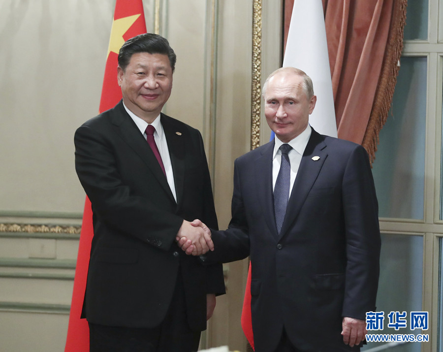——會見俄羅斯總統普京,指出明年是中俄建交70周年,這將是兩國關系發展的主線,屆時要舉辦隆重熱烈、豐富多彩的慶祝活動,推動各領域務實合作取得更多實實在在的成果。