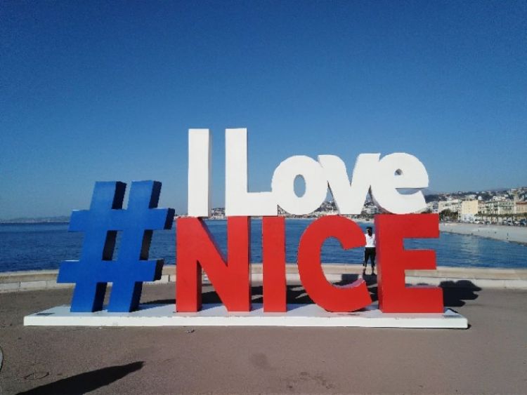 尼斯在恐怖襲擊重創(chuàng)后豎起“我愛尼斯”的標志。2016年7月15日,習近平就尼斯恐襲事件向時任法國總統奧朗德致慰問電。新華社記者 饒愛民 攝