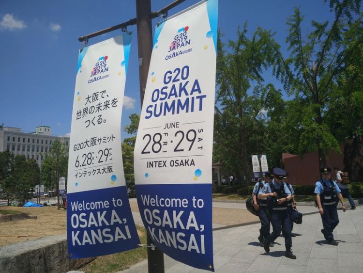 入夏的大阪,驕陽(yáng)燦爛,綠意蔥蘢,海風(fēng)輕拂路人。隨著峰會(huì)臨近,在大阪主要景區(qū)、酒店、商廈及干道,均可以看到帶有二十國(guó)集團(tuán)領(lǐng)導(dǎo)人大阪峰會(huì)元素的標(biāo)牌、海報(bào)和條幅。