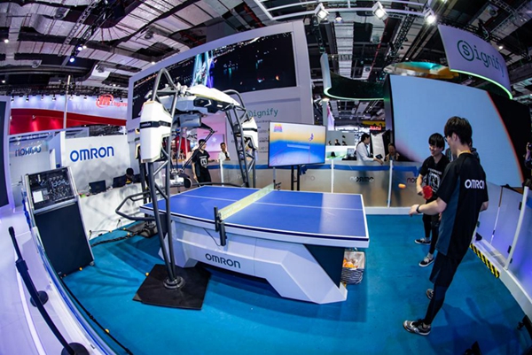 在裝備展區,乒乓球機器人較受關注,不僅互動性強,而且也昭示著人工智能的發展。新華網吳愷 攝