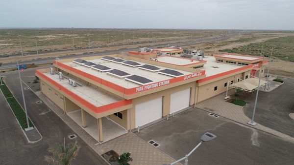 中鐵十八局集團沙特阿拉伯公司以總承包的方式承接了經濟城內基礎設施建設配套的四棟服務型建筑——消防站、警察局、應急醫療中心和政府安保大樓,以及室外配套基礎設施的建設,總建筑面積為7780平方米。