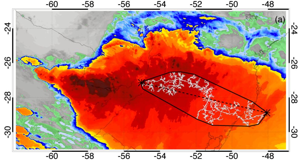 衛星照片:單次長度最長閃電2018年10月31日發生在巴西南部。(圖片來源:世界氣象組織網站)
