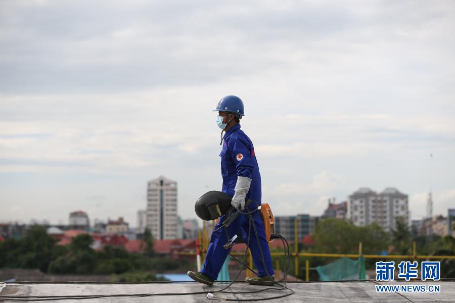 10月28日,在緬甸仰光的國家劇院維修改造項(xiàng)目現(xiàn)場(chǎng),覺泰昂提著電焊工具從屋頂走過。新華社發(fā)(吳昂攝)