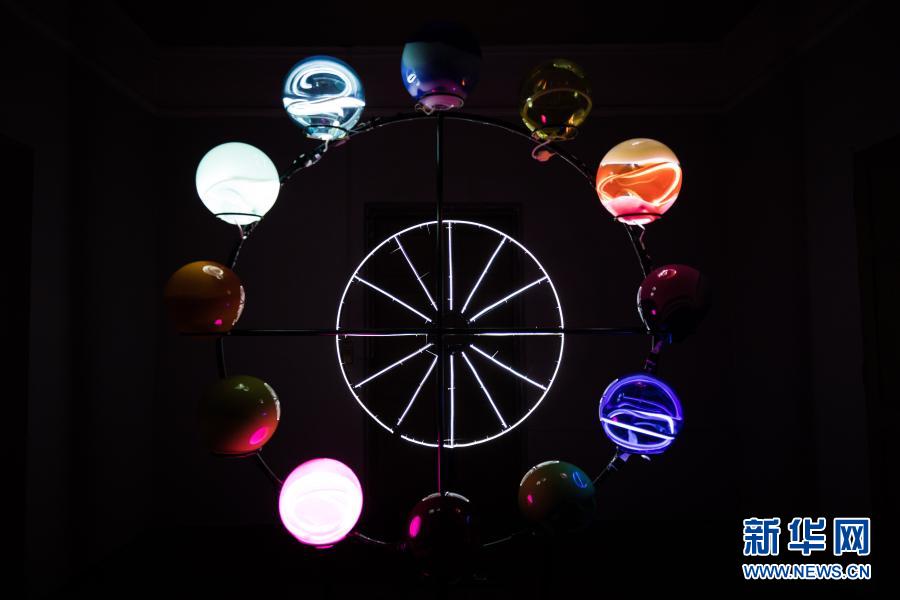 這是12月15日在泰國曼谷“覺醒曼谷”主題燈光藝術節上拍攝的一件燈光藝術作品。新華社記者 張可任 攝
