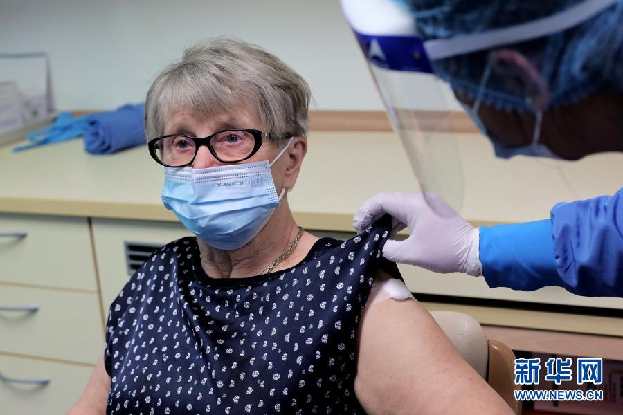 12月27日,在斯洛文尼亞首都盧布爾雅那一家養老院,醫務人員為一名志愿者老人注射新冠疫苗。