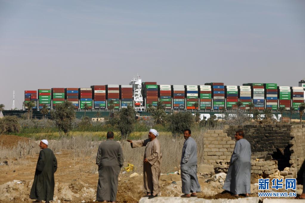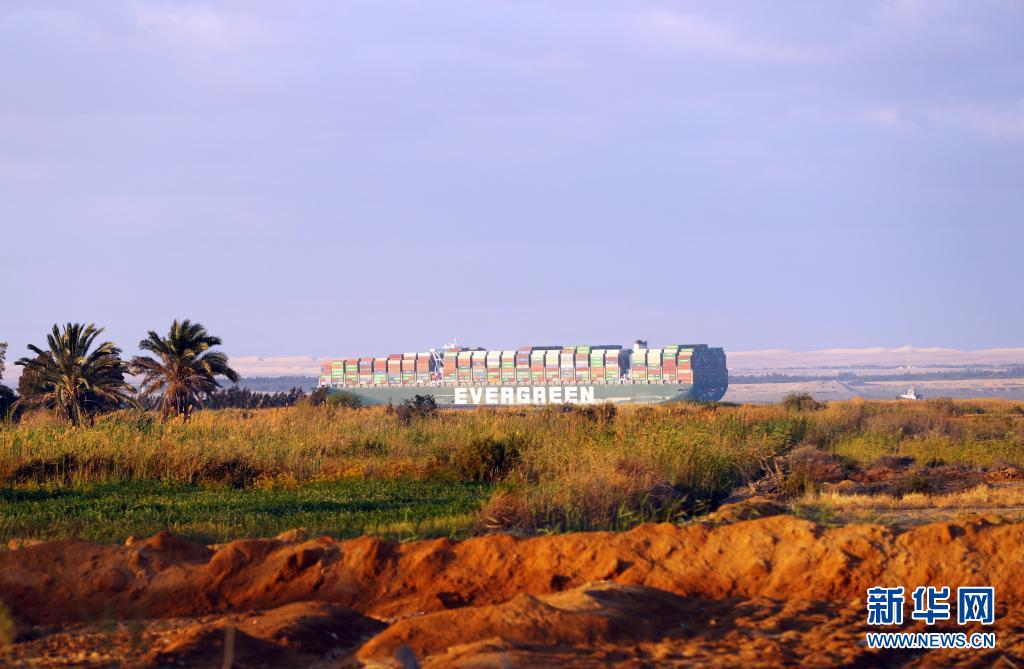 這是3月29日拍攝的移動至埃及蘇伊士運河正常航道上的重型貨輪。新華社發(fā)(艾哈邁德·戈馬 攝)