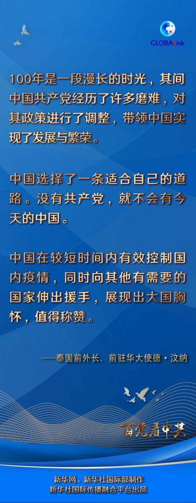 新華社曼谷5月29日電 “100年是一段漫長的時(shí)光,其間中國共產(chǎn)黨經(jīng)歷了許多磨難,對(duì)其政策進(jìn)行了調(diào)整,帶領(lǐng)中國實(shí)現(xiàn)了發(fā)展與繁榮。”泰國前外長、前駐華大使德·汶納日前在曼谷接受新華社專訪時(shí)說。
