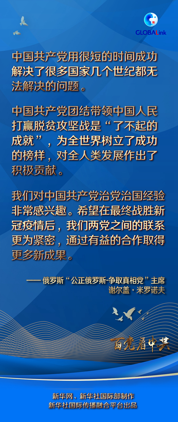 米羅諾夫說,中國共產(chǎn)黨團結(jié)帶領中國人民打贏脫貧攻堅戰(zhàn)是“了不起的成就”,為全世界樹立了成功的榜樣,對全人類發(fā)展作出了積極貢獻。